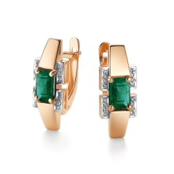 Cercei din aur roșu cu pietre Diamant, Smarald