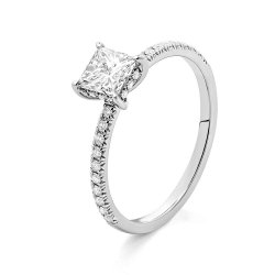 Un inel de logodnă rafinat, realizat din aur alb de titlu 585, ce îmbină eleganța metalului prețios cu strălucirea pietrelor, creat pentru a marca unul dintre cele mai importante momente din viață.