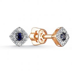 Cercei Pusete din aur roșu cu pietre Diamant, Safir