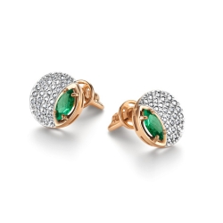 Cercei din aur roșu cu pietre Cubic Zirconia Incolor, Prasiolit și Emailare