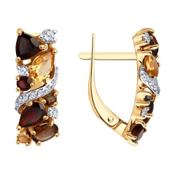 Cercei din aur roșu cu pietre Cubic Zirconia Incolor, Granat și Cuarț fumuriu