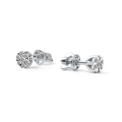 Cercei din aur alb cu pietre Diamant, Smarald Hidrotermal