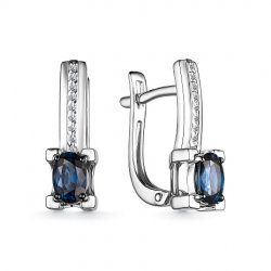 Серьги Пусеты из белого золота с камнями Бриллиант, Сапфир