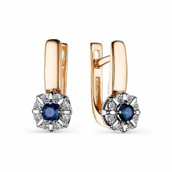 Серьги из красного золота с камнями Бриллиант, Сапфир