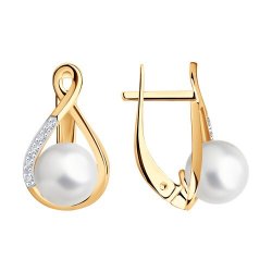 Серьги из красного золота с камнями Бриллиант, Жемчуг белый