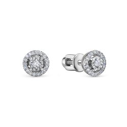 Серьги Пусеты из белого золота с камнями Бриллиант