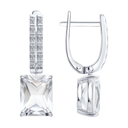 Серьги Длинные из белого золота с камнями Бриллиант, Горный хрусталь