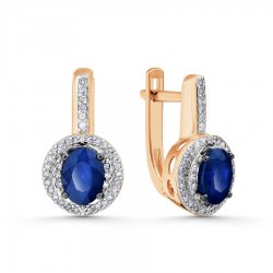 Серьги из красного золота с камнями Бриллиант, Сапфир