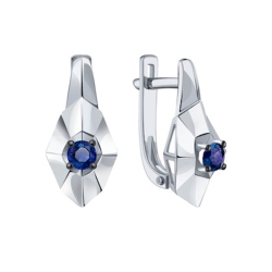 Серьги из белого золота с камнями Бриллиант, Сапфир