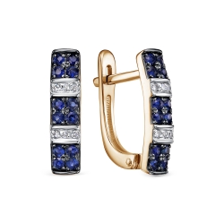 Серьги из красного золота с камнями Бриллиант, Сапфир