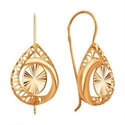 Серьги Длинные из красного золота с камнями Фианит, Горный хрусталь