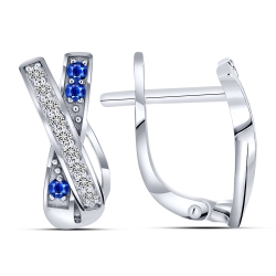 Серьги из белого золота с камнями Бриллиант, Сапфир