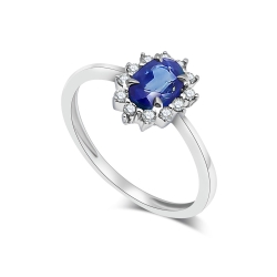 Кольцо из белого золота с камнями Бриллиант, Сапфир