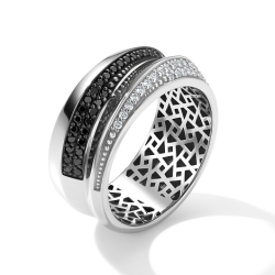 Кольцо из белого и красного золота с камнями Бриллиант, Бриллиант коньяк и Черный бриллиант