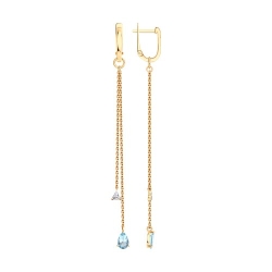 Серьги Длинные из красного золота с камнями Выращенный бриллиант, Топаз голубой