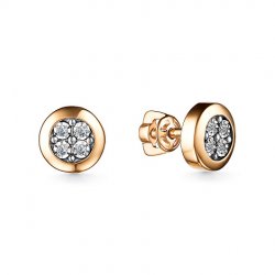 Серьги Пусеты из красного золота с камнями Бриллиант