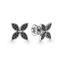 Серьги Пусеты из белого золота с камнями Черный бриллиант