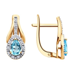 Серьги из красного золота с камнями Бриллиант, Топаз голубой