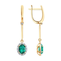 Серьги Длинные из красного золота с камнями Бриллиант, Выращенный бриллиант и Изумруд гидротермальный