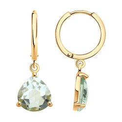 Серьги из красного золота с камнями Фианит, Хризолит