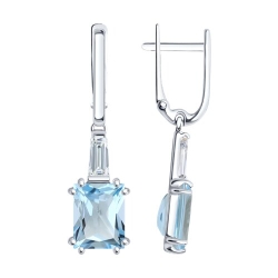 Серьги Длинные из белого золота с камнями Фианит, Топаз голубой