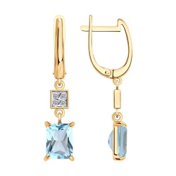 Серьги Длинные из красного золота с камнями Фианит, Топаз голубой