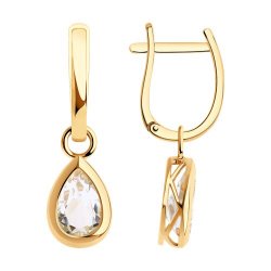 Серьги Длинные из красного золота с камнями Горный хрусталь