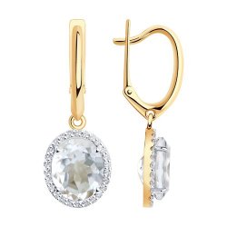 Серьги Длинные из красного золота с камнями Фианит, Горный хрусталь