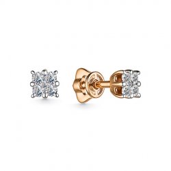 Серьги Пусеты из красного золота с камнями Бриллиант