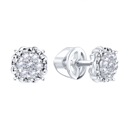 Серьги Пусеты из белого золота с камнями Бриллиант